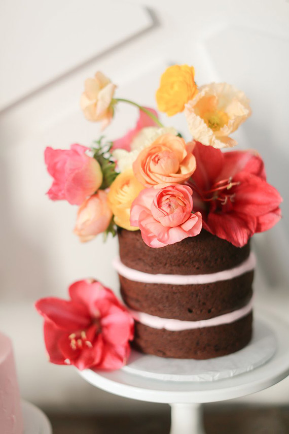 Have you guys heard about the naked cakes trend? I have seen it all over the web and blogosphere and I am starting to warm up to it. It is basically what it sounds. A layer cake without the outer layer of frosting. There is absolutely no way the fiance will be on board for this for our wedding or anything (he is VERY traditional) but I came across it on a kid’s b-day party blog post and really was impressed! Here are a few that also caught my eye….